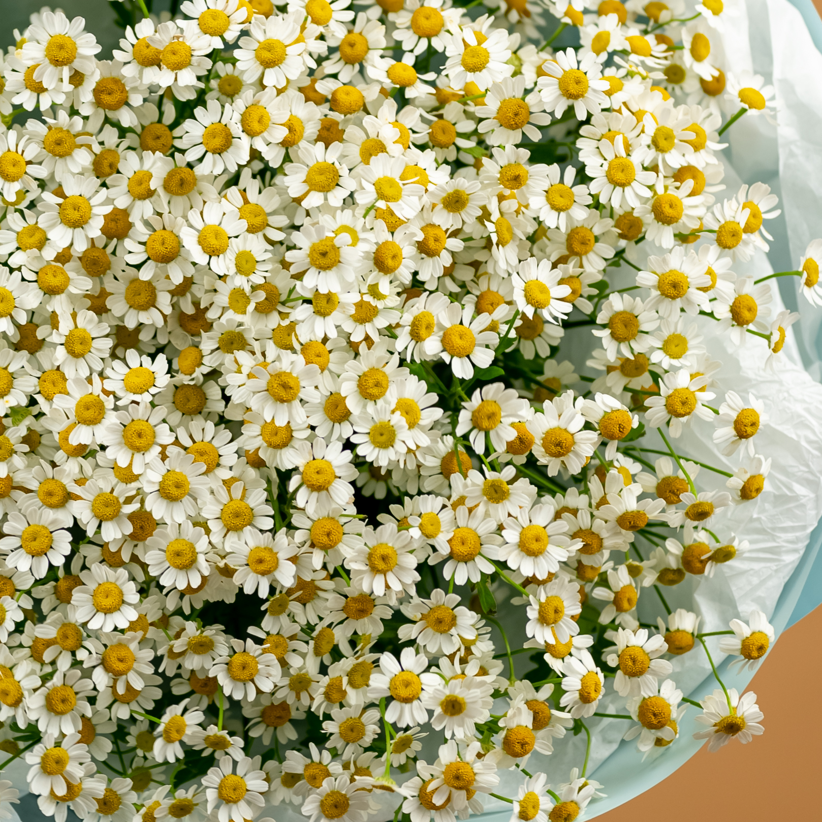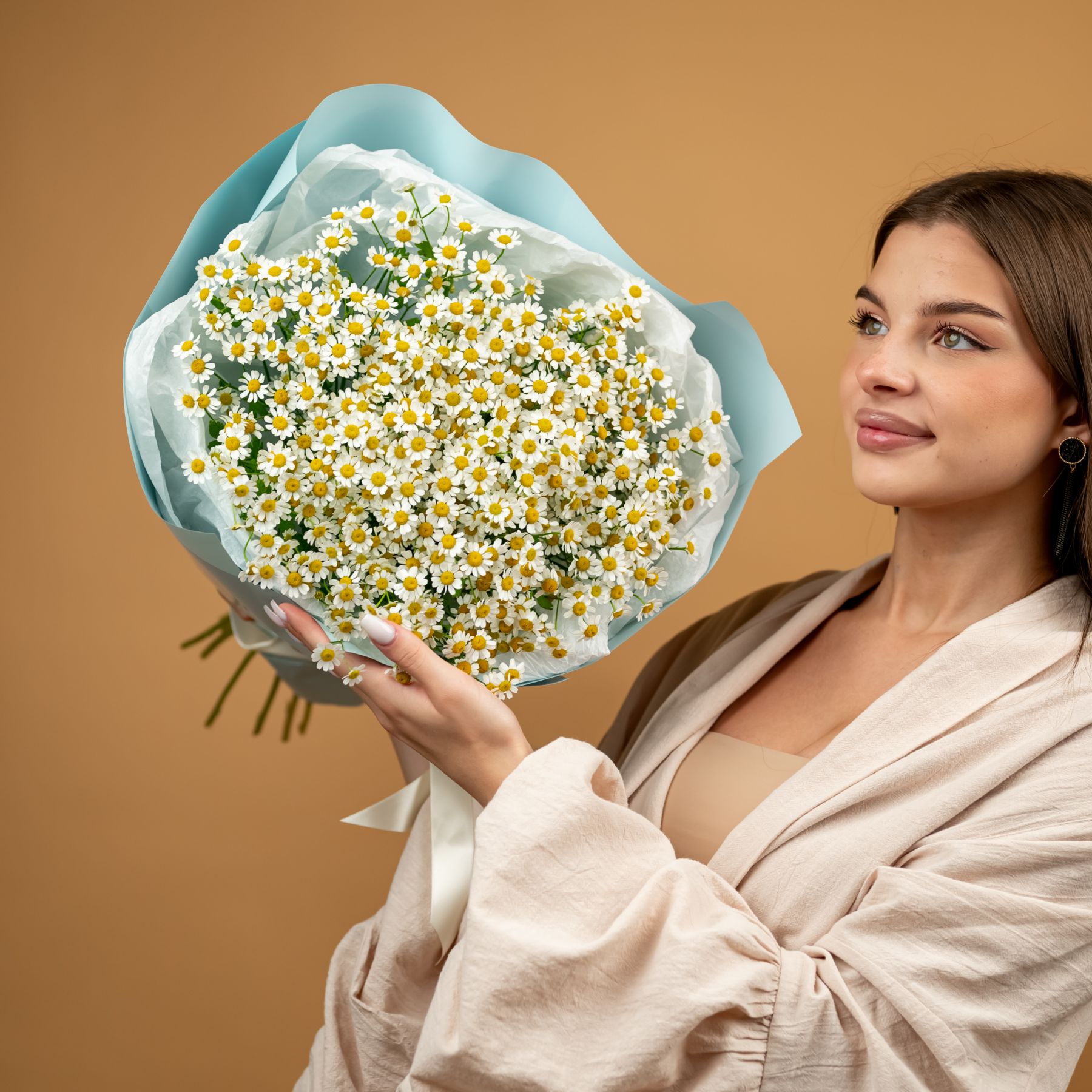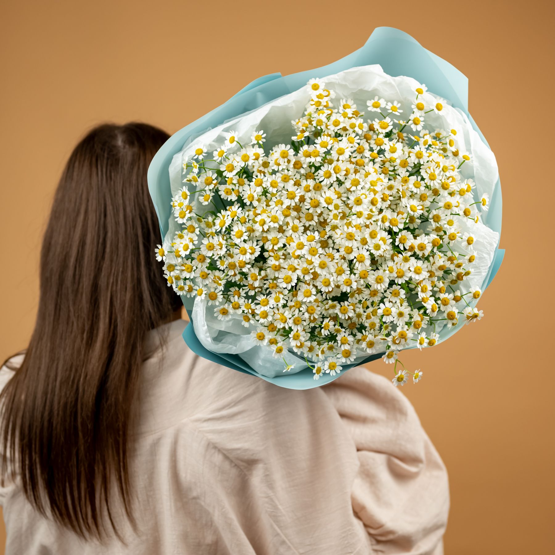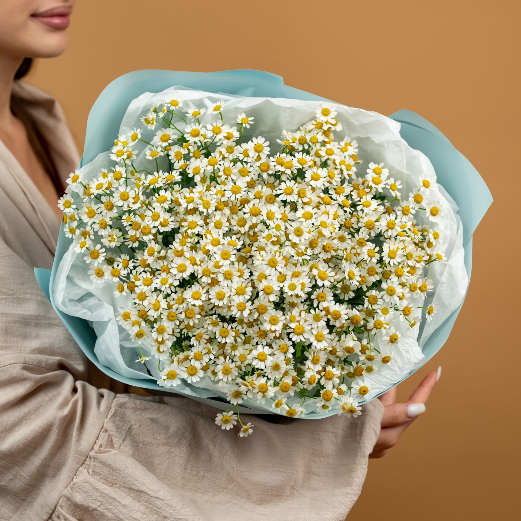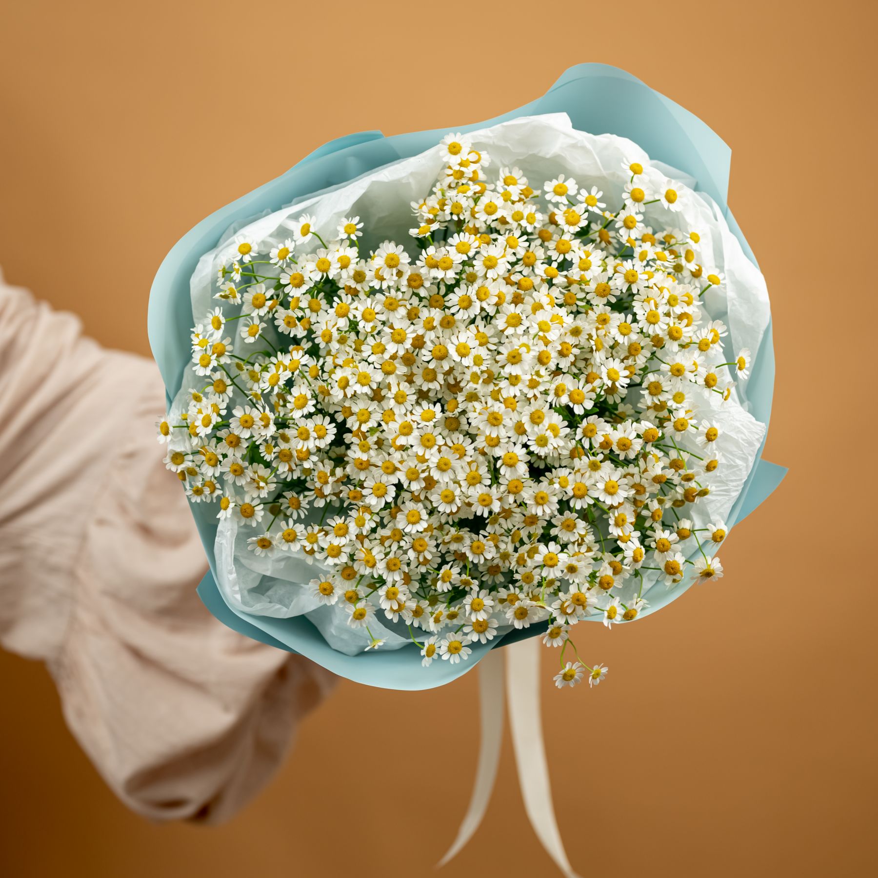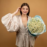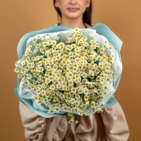 Букет из нежных ромашек красивом оформлении.