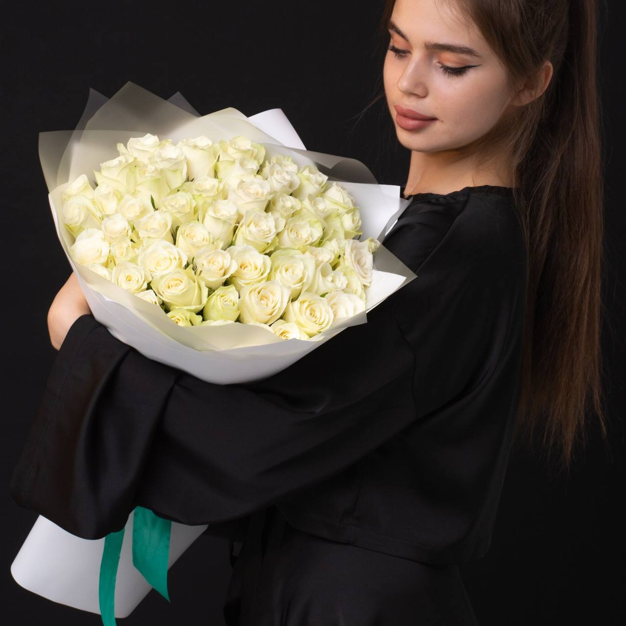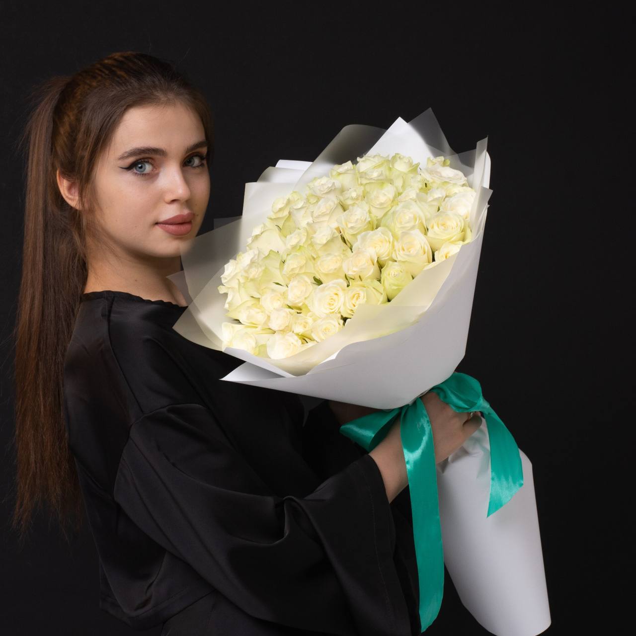 51 роза в оформлении (40 см).
