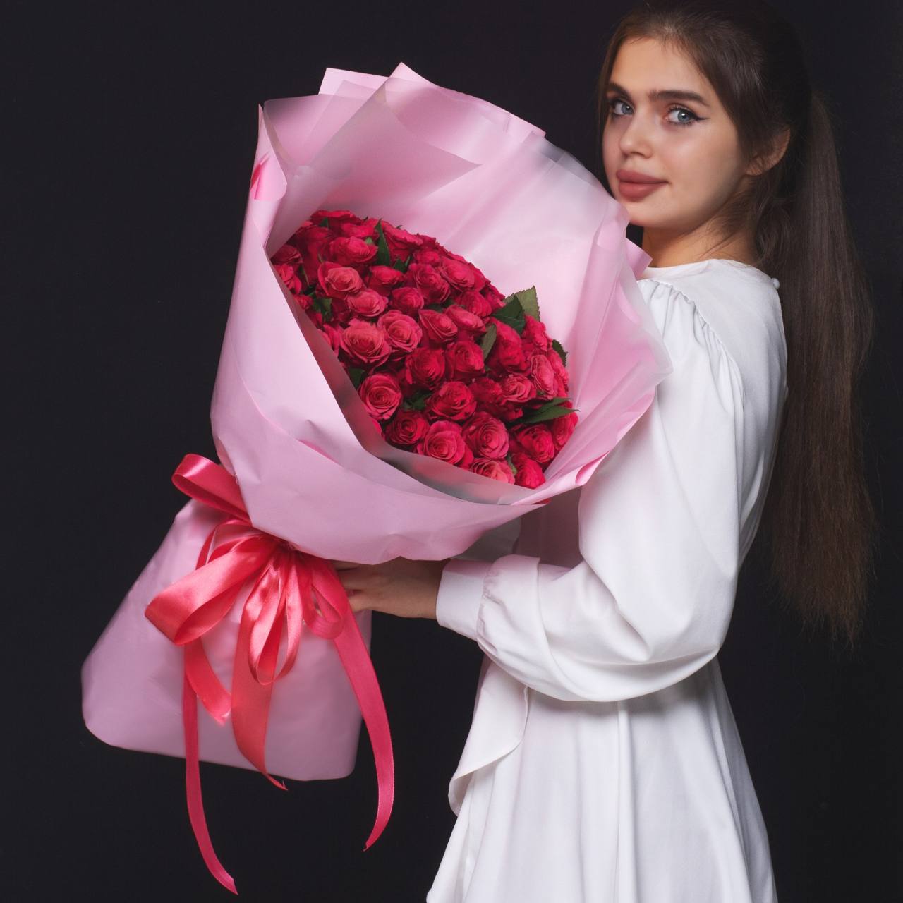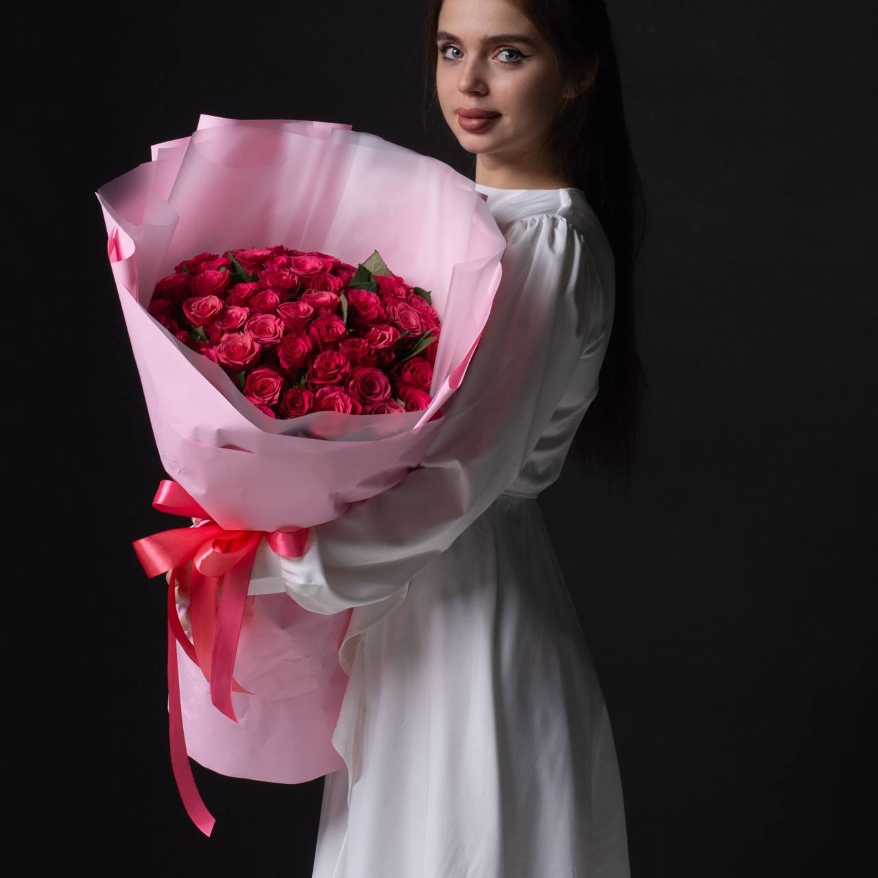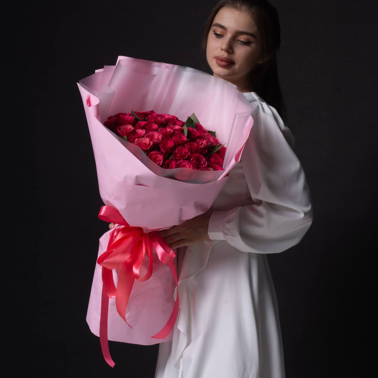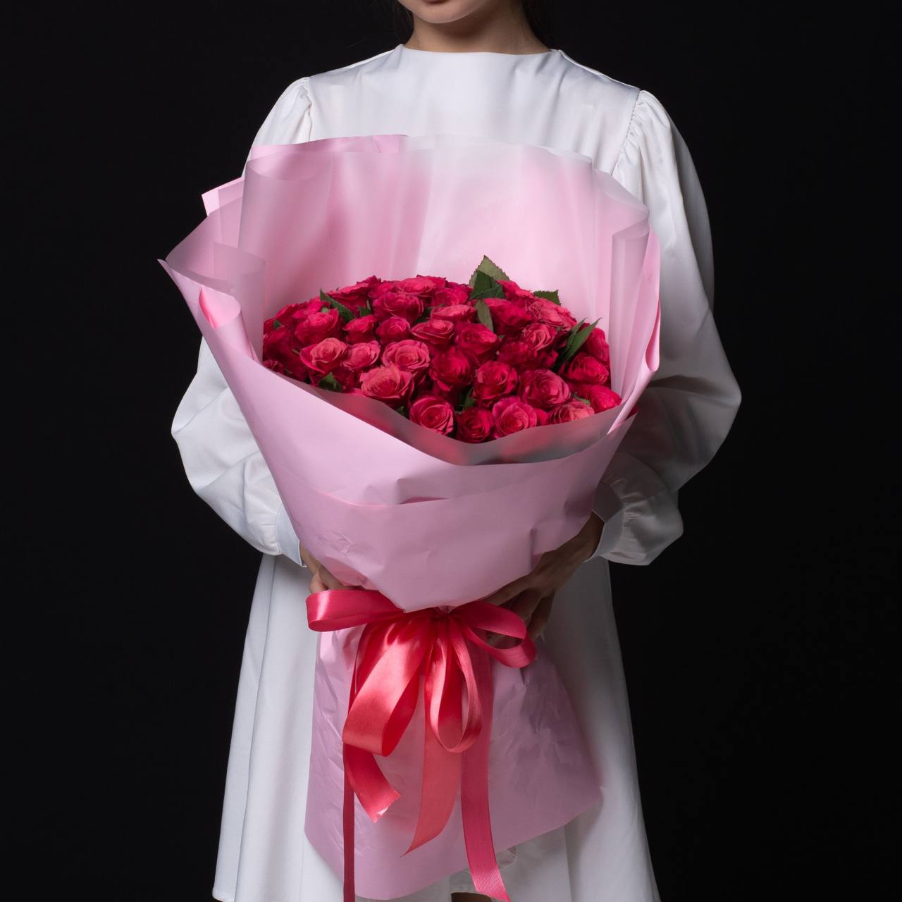 51 роза в оформлении (40 см).