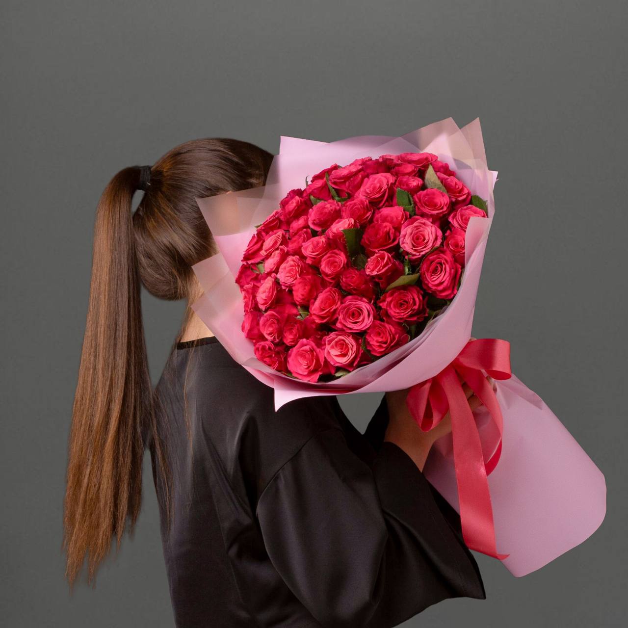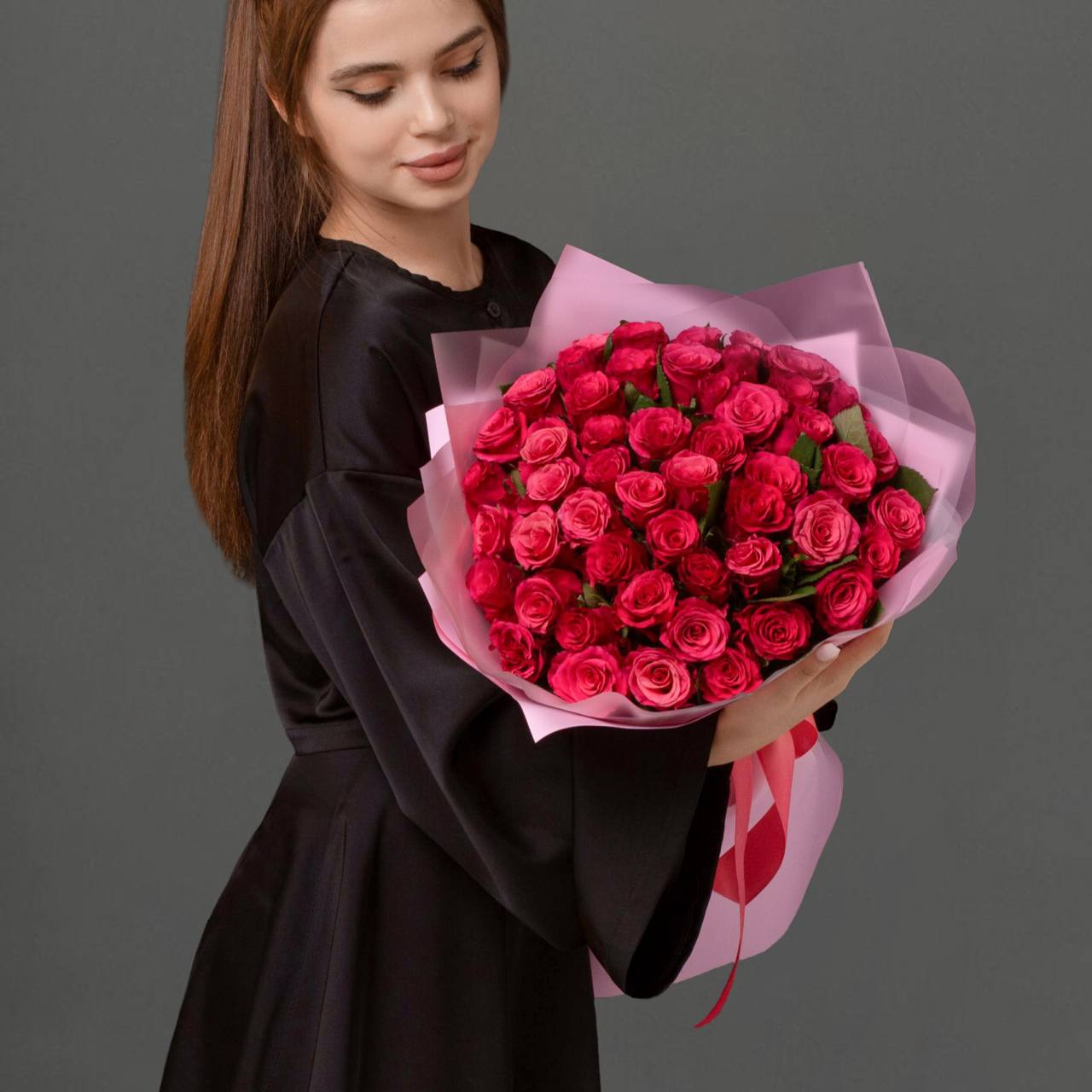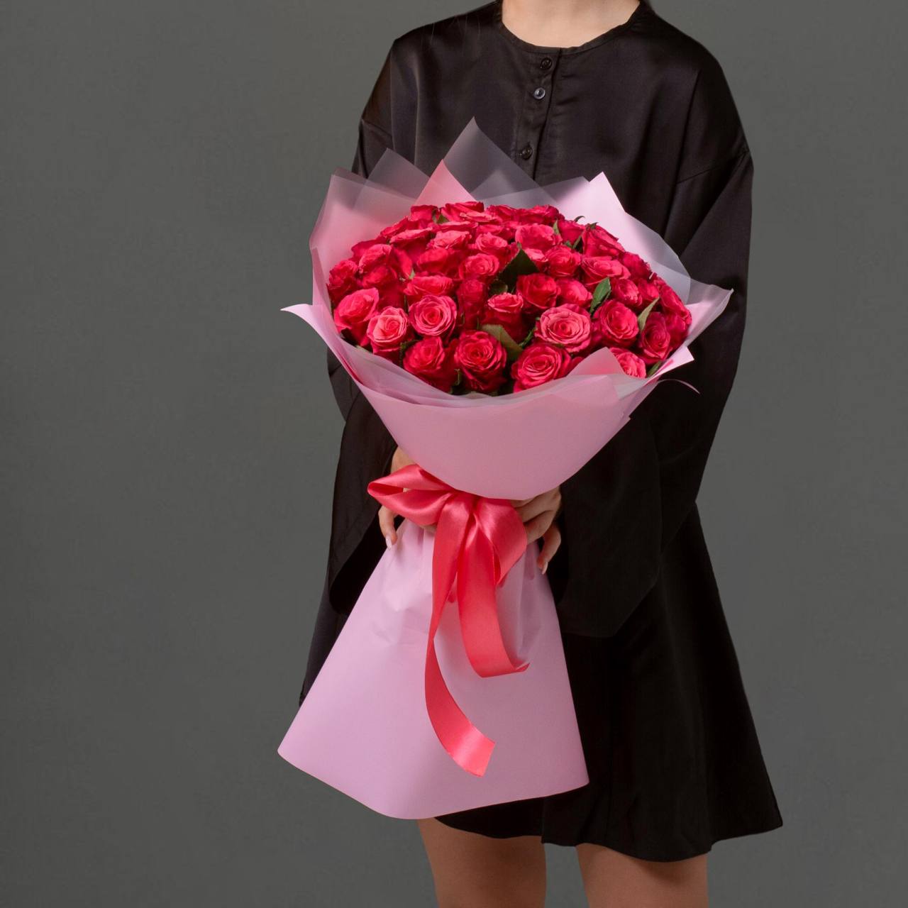 51 роза в оформлении (40 см).