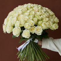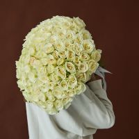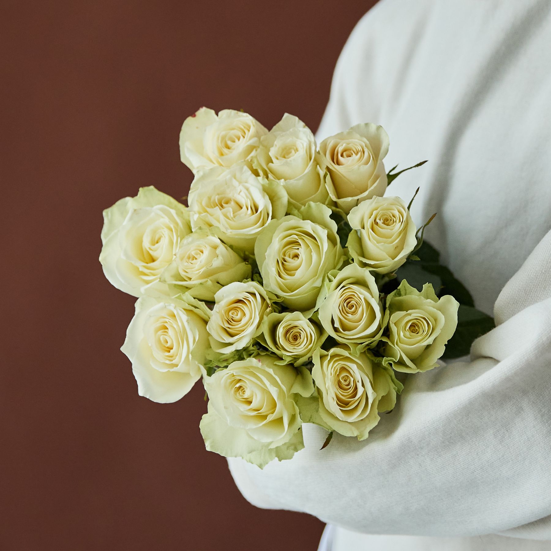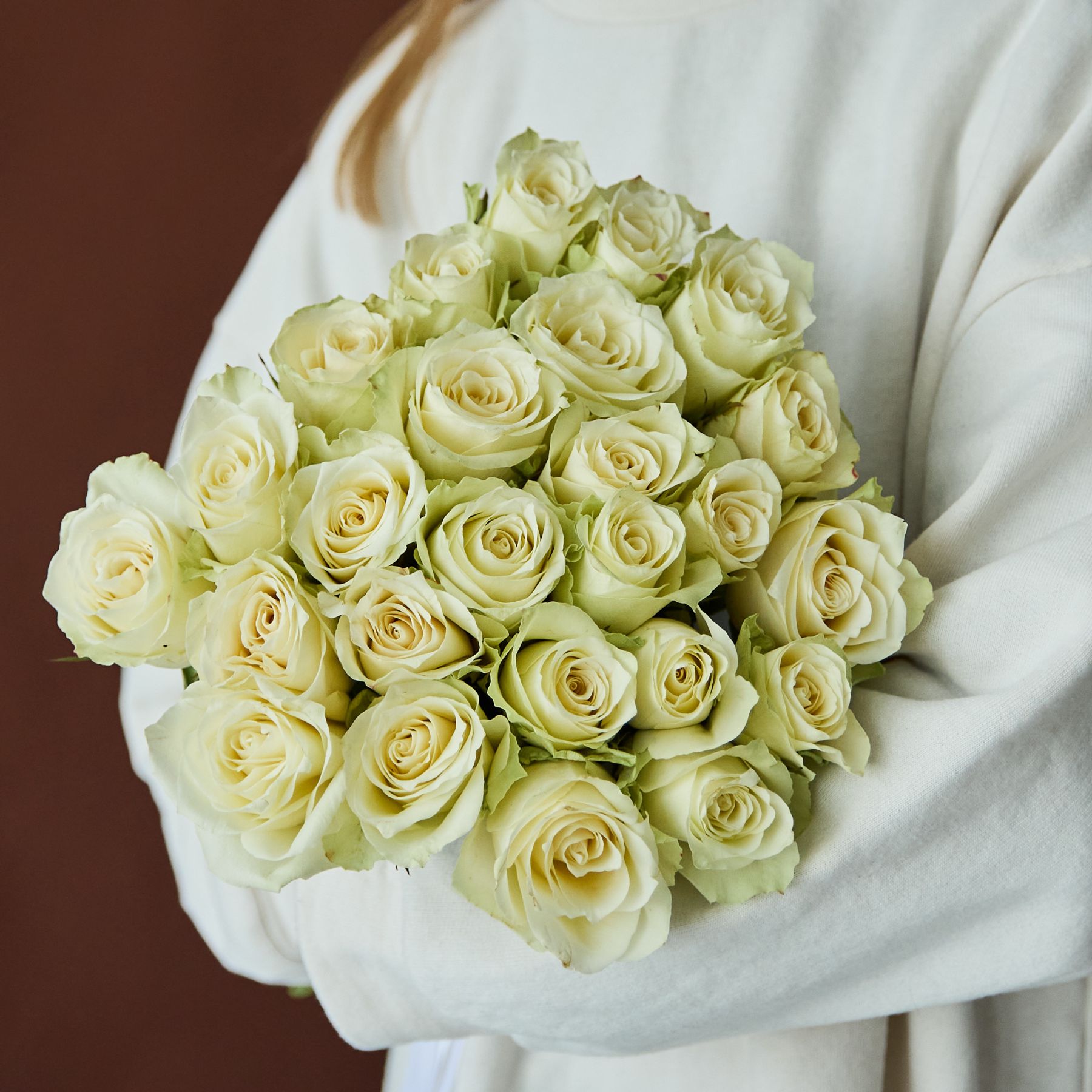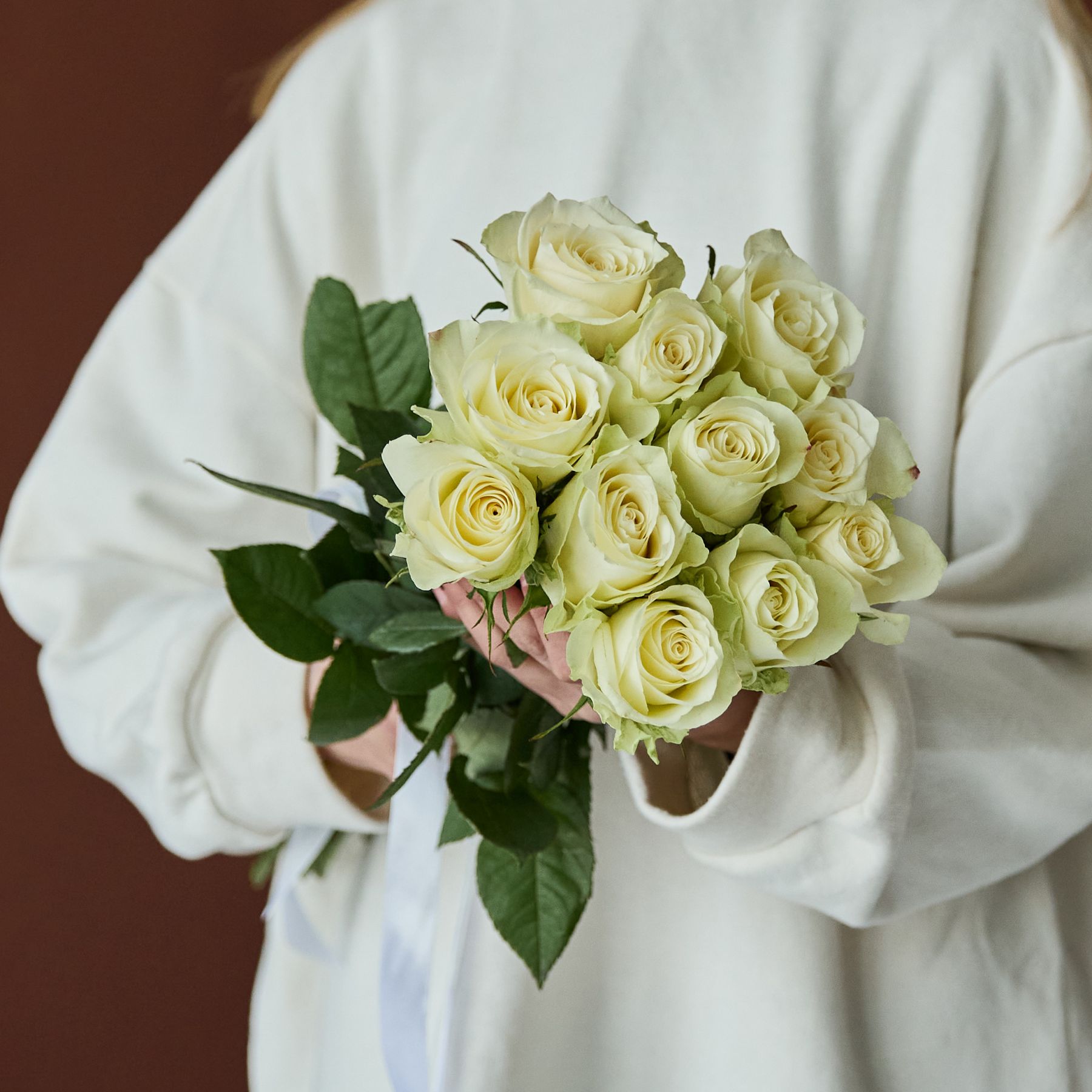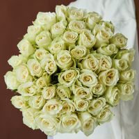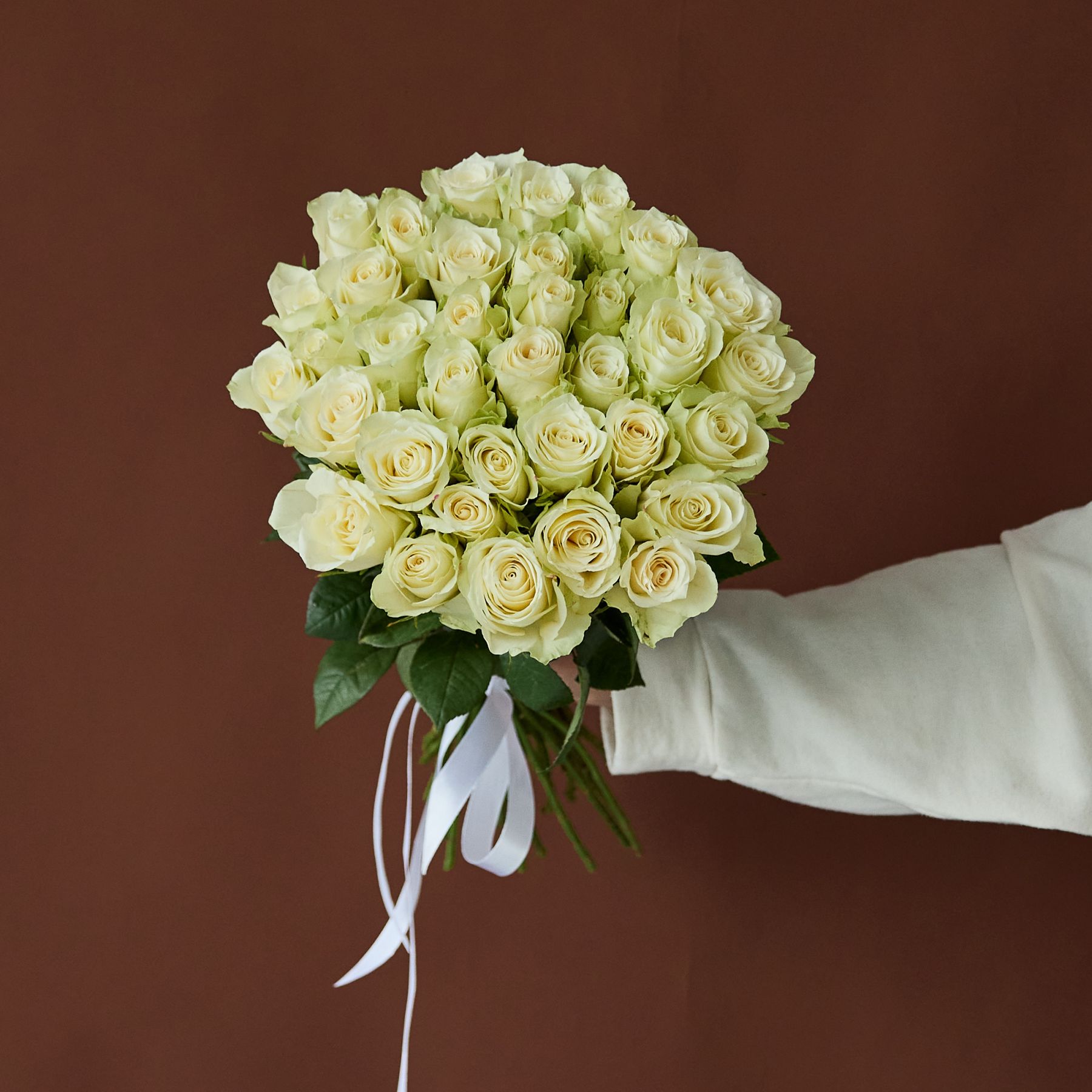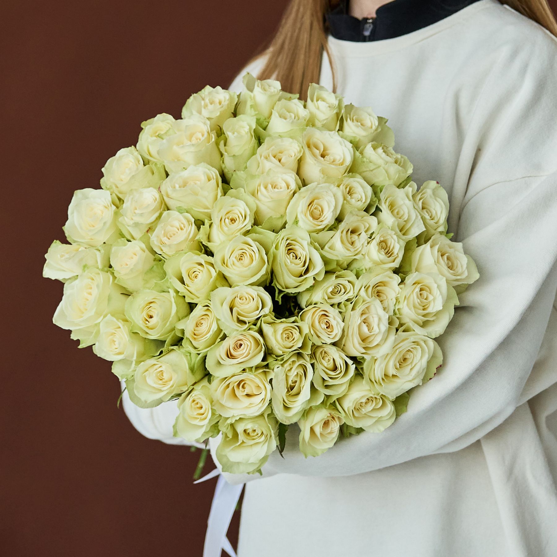 Белые розы Импорт 60 см под ленту, красивое раскрытие бутона.
