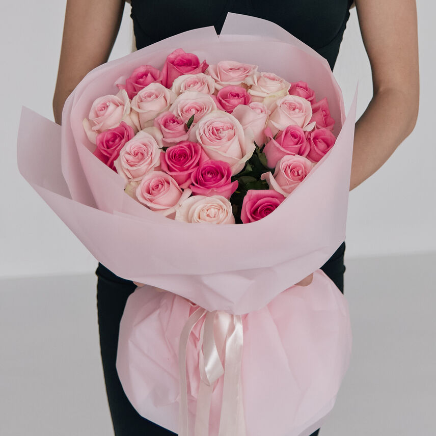 Букет из розовых роз 50 см в стильном оформлении.